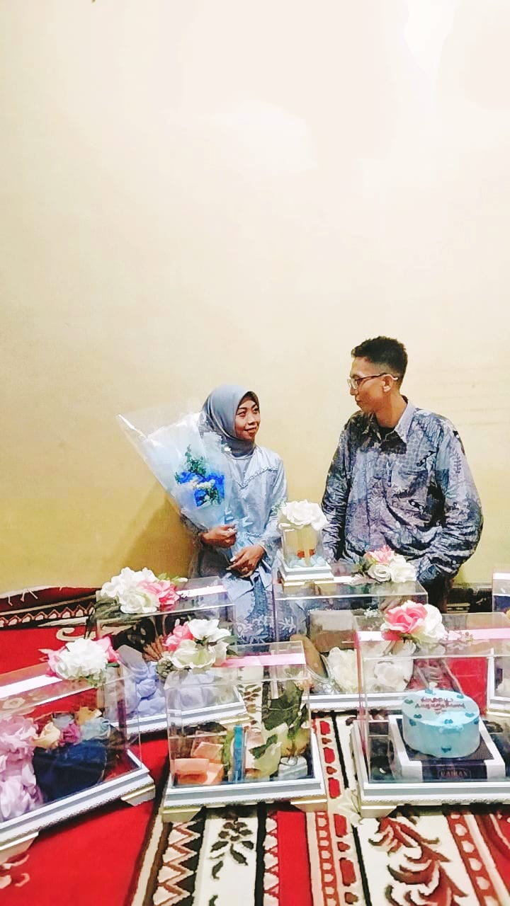Disaat dithn 2022 setelah kita tukeran nomor WhatsApp dan kita masih seperti biasanya chattingan dan tiba² menimbulkan perasaan yang sama ,sama² suka dan sma² nyaman ,setelah itu baru lah kita mengungkapkan perasaan cinta masing² bahwasanya kita sma² cinta dan kita pacaran.setelah itu kita berfikir untuk tidak mau jalanin hubungan begitu lama.setelah menjalani 4 bulan disitulah kita berfikir untuk bersama untuk membangun keluarga kecil kami. Semoga Allah SWT bemberikan keberkahan untuk pernikahan kami.